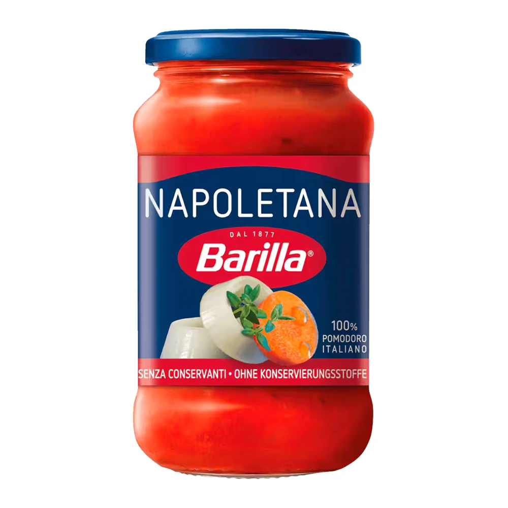 Die Barilla Tomatensauce Napoletana überzeugt mit sonnengereiften Tomaten, aromatischen Kräutern und einem Hauch Knoblauch. Sie ist ideal für Pasta oder als Grundlage für herzhafte Gerichte und liefert einen authentischen, italienischen Geschmack.