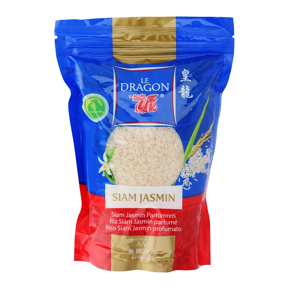 Le Dragon Jasminreis ist ein hochwertiger, langkörniger Duftreis aus Thailand. Er zeichnet sich durch sein zartes, blumiges Aroma und eine lockere, leicht klebende Konsistenz nach dem Kochen aus. Ideal als Beilage zu asiatischen Gerichten, Currys oder Pfannengerichten.