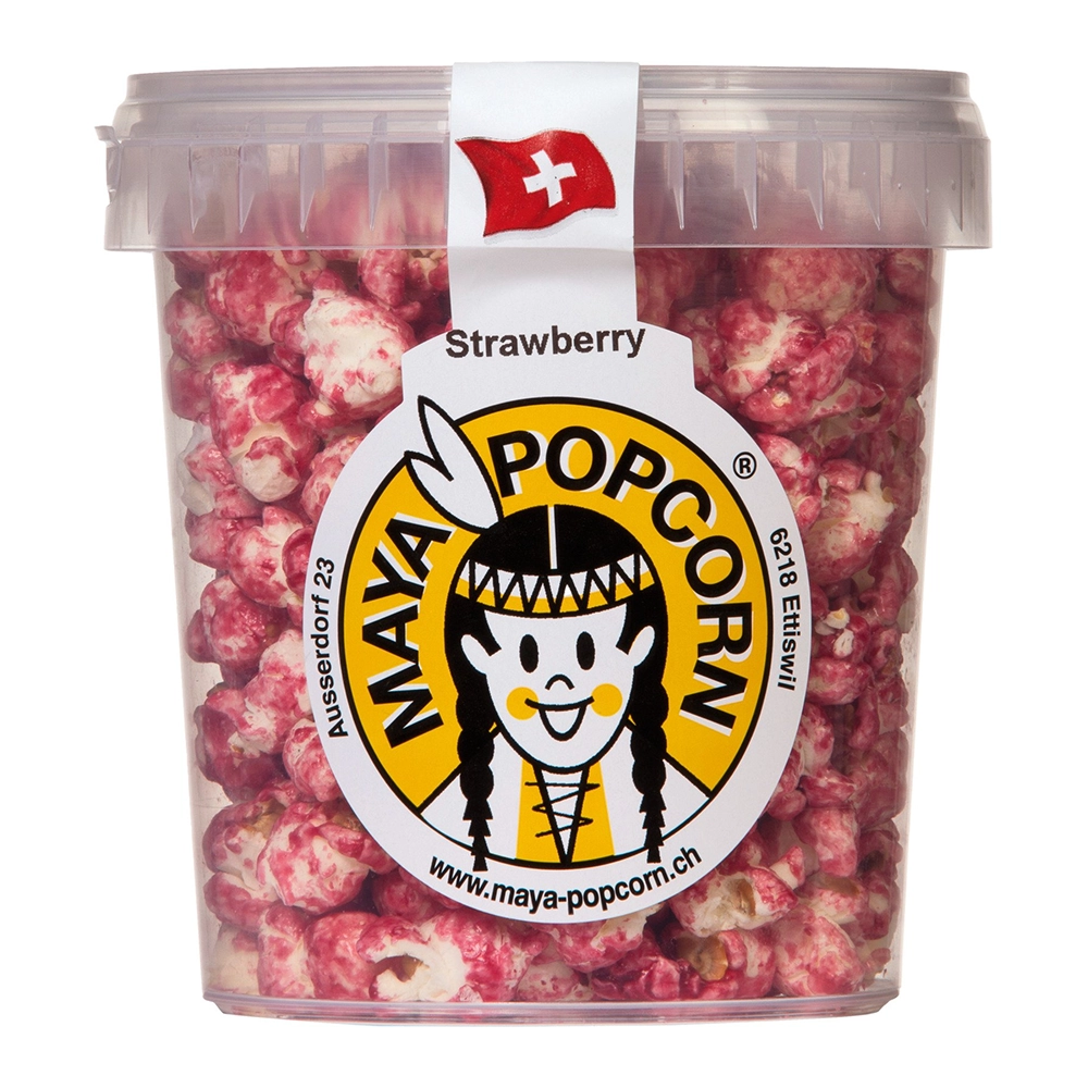 Maya Erdbeere Popcorn kombiniert knuspriges Popcorn mit fruchtigem Erdbeergeschmack. Perfekt für Filmabende, Partys oder als süßer Snack zwischendurch.