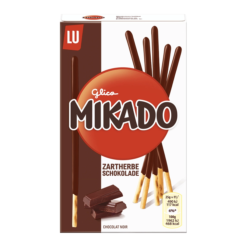 Mikado Sticks mit zartherber Schokolade kombinieren knusprige Keksstäbchen mit feiner dunkler Schokolade. Ideal zum Snacken, Teilen oder als süßer Begleiter zu Kaffee und Tee.